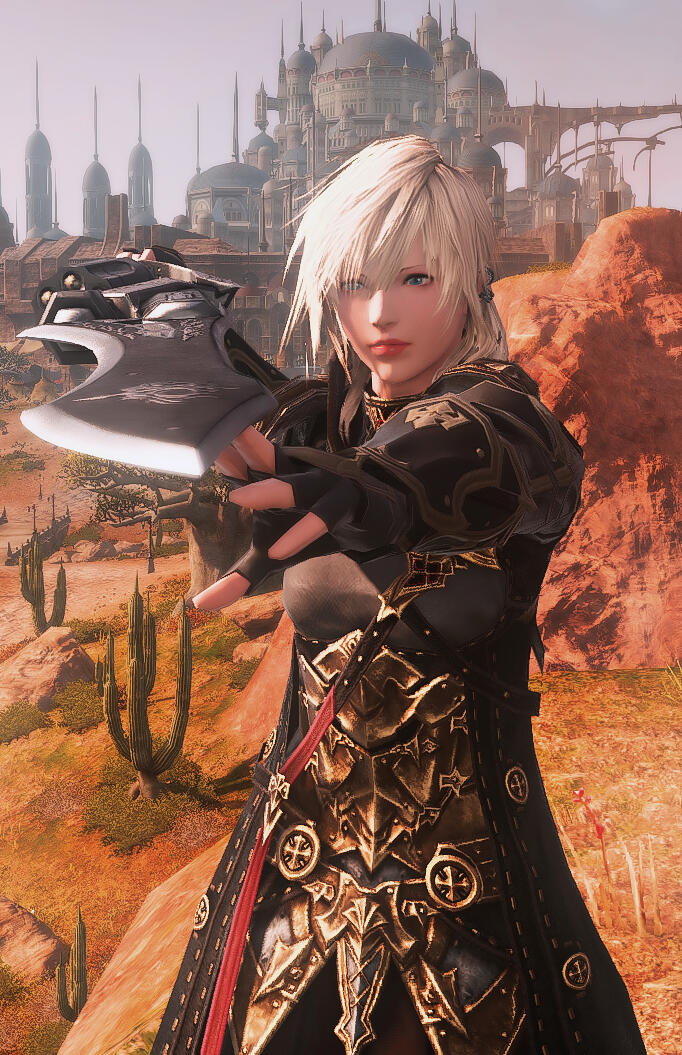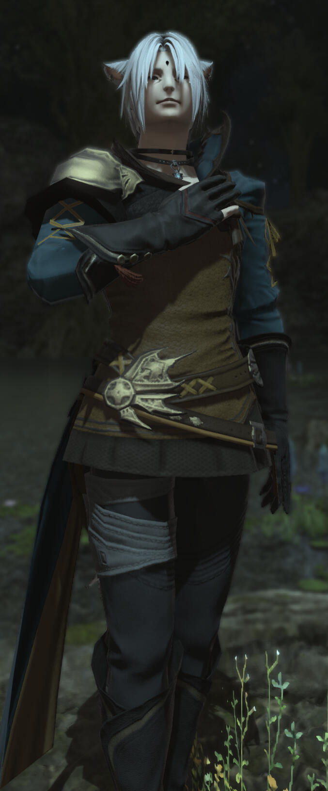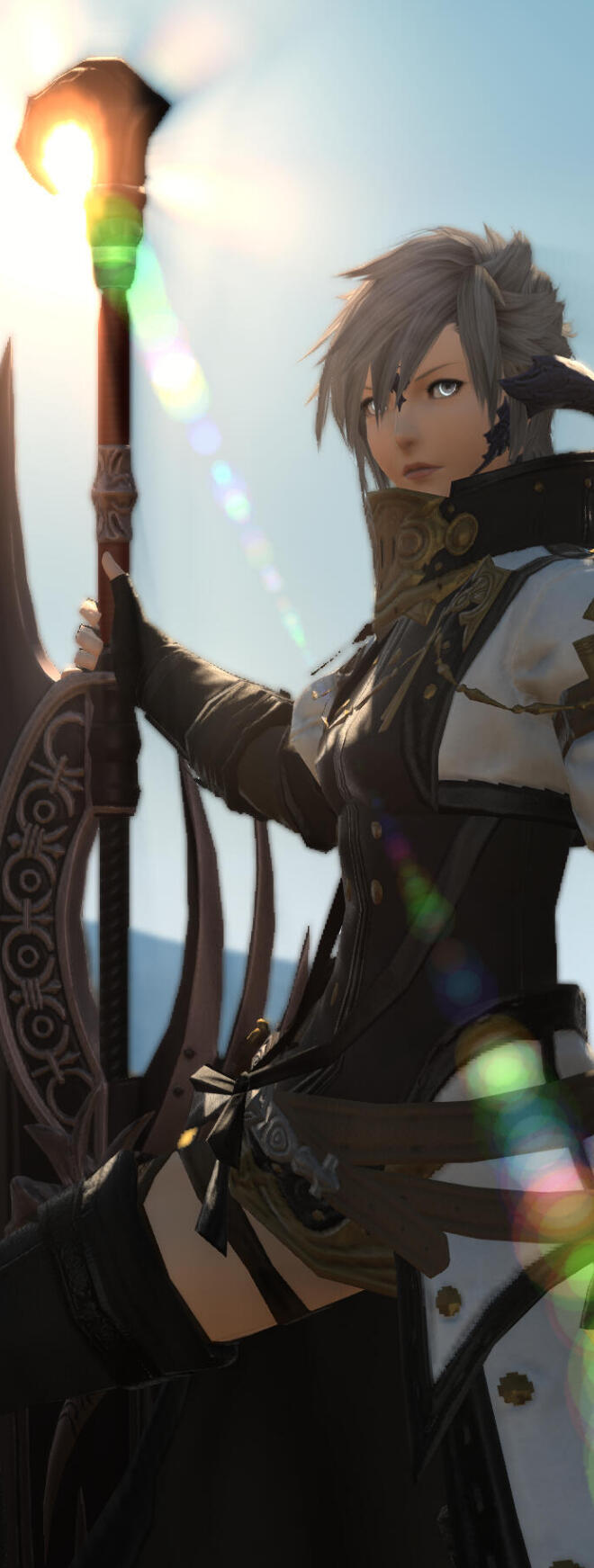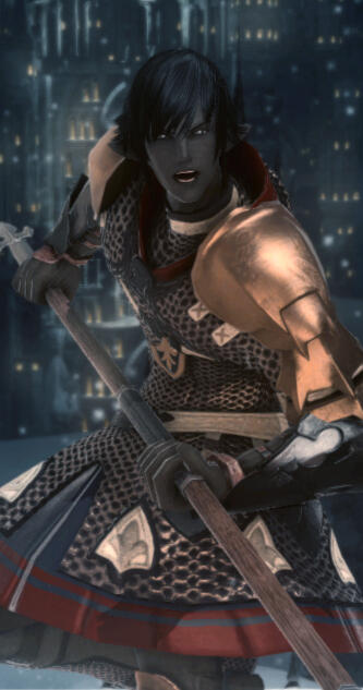 Elegant, erudite, diligent, protective.Only daughter of a teacher and a healer, this Sharlayan girl's life was turned upside down the moment she landed in Limsa Lominsa.Now something of a poster-hero for the realm, this Warrior of Light must balance that which she wants against that which she believes is her duty.