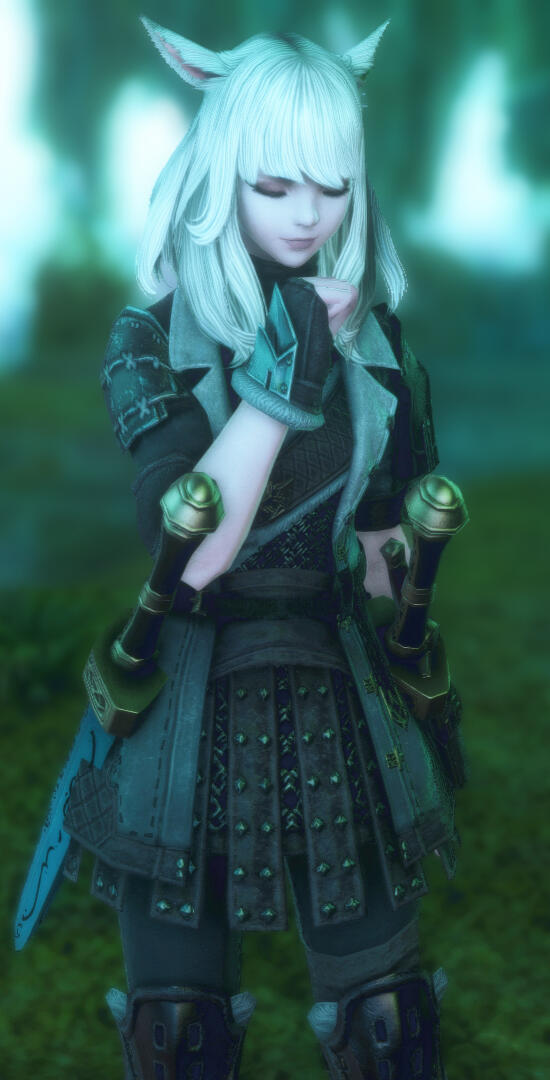 Scholarly, bold, resolute, driven.A spellsword and aetherologist aged twenty-nine, this peculiar Xaela is a pensive realist with an affable attitude.Obsessed with growing ever more powerful, she is at once inventor and practitioner of equally elaborate and destructive magics.
